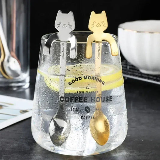 2/4PCS Set 304 Stainless Steel Cat Spoon Creative Cartoon Hanging Edge Spoon Cute Coffee Spoon Gold-plated Stirring Spoon